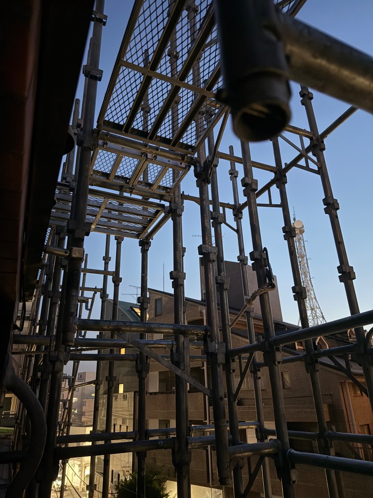 12/9、9月から始まったマンション工事も終盤を迎え、ベランダを覆っていた足場が解体。青空が清々しい。