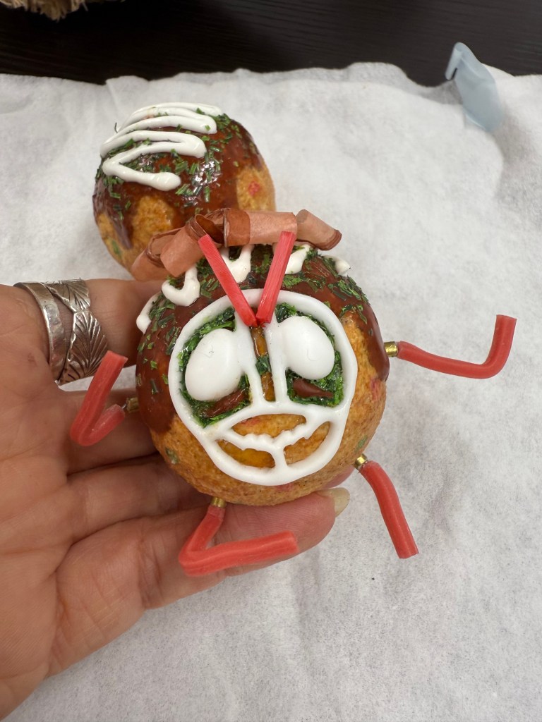 10/23、ライデンフィルムズに版権イラストの打ち合わせに行った際、『東島丹三郎は仮面ライダーになりたい』EDで使用されたタコ焼きライダーとクマさんの実物に触らせてもらえました!タコ焼きは紅生姜の手足と鰹節が別パーツで、意外と重量感あり。クマさんだけ写真NG。これがあのEDになるのか……と思うと、ストップモーションって本当にすごい。Dwarf Studios様、素晴らしい映像をありがとうございます!