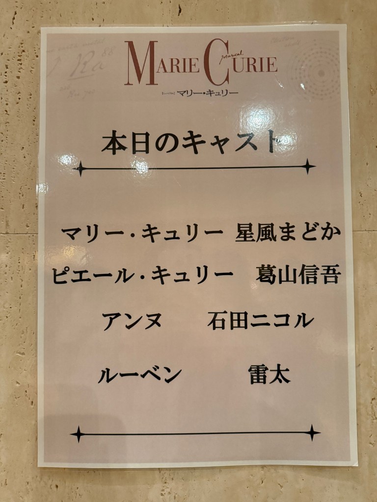 お目当ての葛山信吾さんの伸びやかな歌声はミュージカルにぴったり。残念ながら「マリー・キュリー」は権利関係で円盤化できないそうで……なんとももったいない話です。それだけに貴重な観劇となりました。